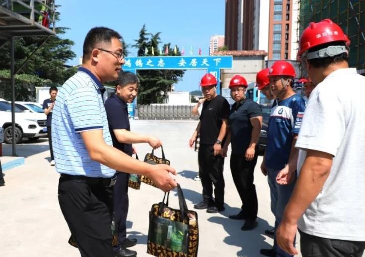 8月4日,市總工會職工服務中心主任鄭春剛一行在城建集團黨委副書記、總經(jīng)理孫利劍和工會主席闞吉軍的陪同下,到集團新苑陽光項目部為冒高溫、戰(zhàn)酷暑的一線職工送清涼,表達關懷與慰問。