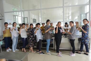敬老的光榮傳統(tǒng),集團(tuán)女工委特意邀請(qǐng)退休職工張大姐進(jìn)行現(xiàn)場(chǎng)指導(dǎo)。配料、折葉、扎繩、蒸煮,大家分工明確、各顯其能,整個(gè)過(guò)程充滿了歡聲笑語(yǔ)。經(jīng)過(guò)辛勤勞作,幾百個(gè)形態(tài)各異的粽子新鮮出爐,清爽甘醇的味道飄滿了整個(gè)食堂,看著大家熱火朝天的勁頭,張大姐不時(shí)給予了贊許的目光。