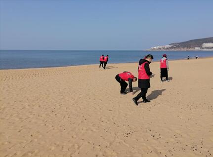 藍(lán)天白云、碧海清風(fēng),志愿者們身穿紅馬甲、頭戴小紅帽忙碌奔走在2800余米的海岸線上,有的
